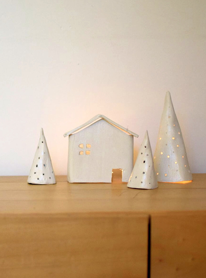Grâce à ce kit DIY, vous disposerez de toutes les fournitures nécessaires ainsi que des modèles pour réaliser vos photophores. En utilisant l’argile autodurcissante, c’est une façon d’apporter la céramique à portée de main ! Ainsi vous aurez la possibilité de fabriquer une maisonnette et deux sapins de deux tailles différentes.